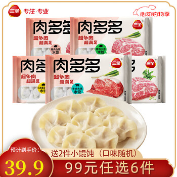 三全精选高端食材营养速冻饺子方便速食虾多多肉多多菜多多系列 肉多多猪肉香菜水饺400克