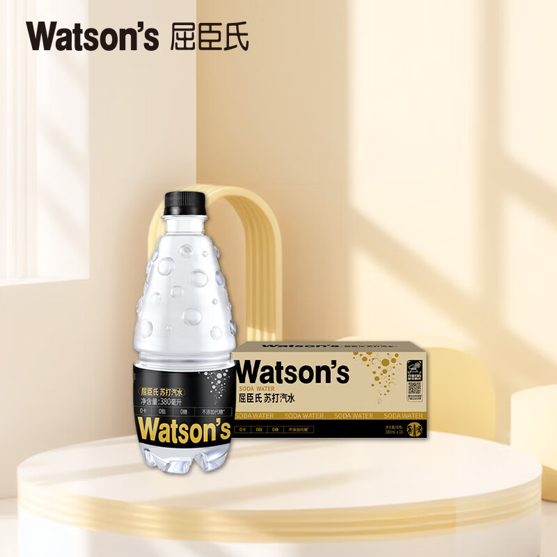 屈臣氏原味无糖苏打水0糖0卡0脂含汽苏打饮料380mL*18瓶装整箱春季出游