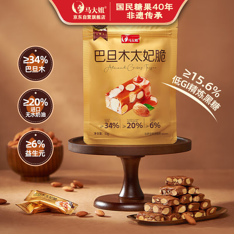 马大姐 糖果 巴旦木太妃糖 60g 硬糖 干果夹心糖 送礼物休闲零食下午茶