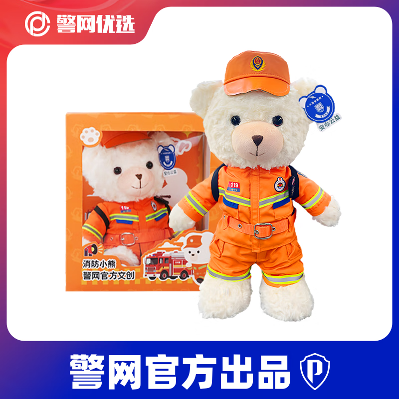 JWCP警网优选官方正品消防小熊玩偶公仔套装(买一送二,到手三件) 消防公仔橙色 32cm