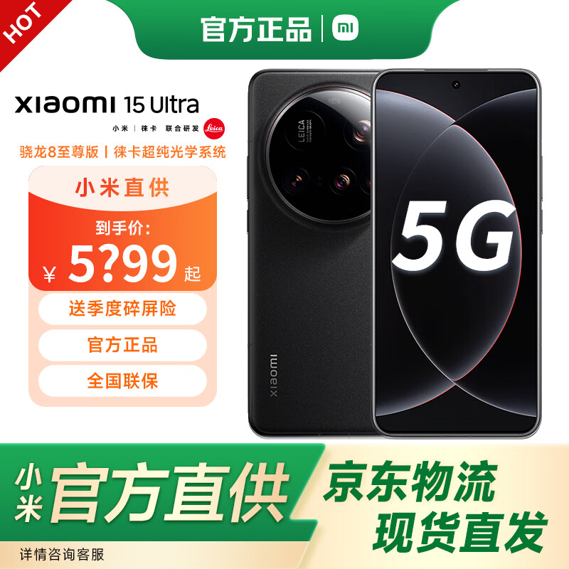 小米15Ultra 徕卡2亿超级长焦 6000mAh小米金沙江电池 5g拍照手机 黑色 12GB+256GB 【官方标配 京仓直发】