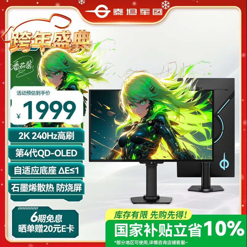 泰坦军团 26.5英寸 QD-OLED 2K 240Hz 原生10bit DeltaE≤1 硬件级低蓝光 升降旋转底座 元战 显示器G2785S