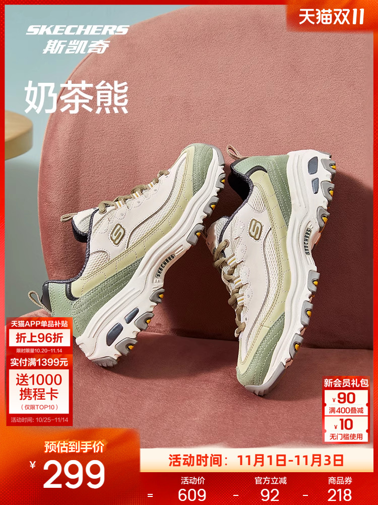 斯凯奇运动鞋女款奶茶熊复古户外休闲登山徒步百搭增高老爹鞋时尚