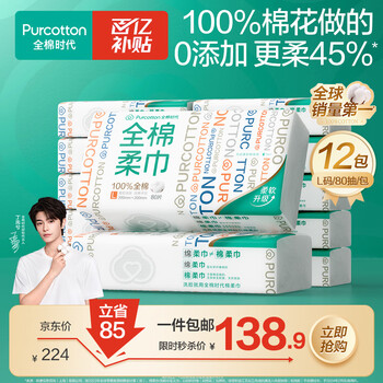 全棉时代【丁禹兮同款】洗脸巾一次性纯棉干湿两用棉柔巾12包20*20cm