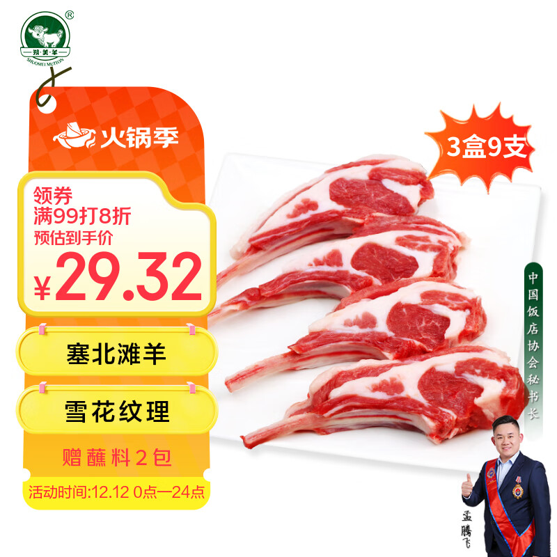 朔美羊塞北滩羊羔羊 原切羊肉战斧法式羊排600g生鲜烧烤食材 源头直发