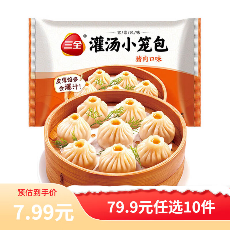三全中式早餐包点糍粑春卷上海风味小馄饨奶黄包年夜饭半成品速食速冻 灌汤小笼包 268g/12只