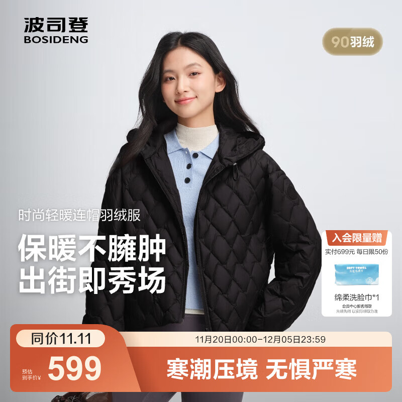 波司登(BOSIDENG)2025新款轻薄羽绒服女短款90绒连帽菱格保暖防风外套B250135316 夜空黑8F44 M 165/88A 体重约125-140斤