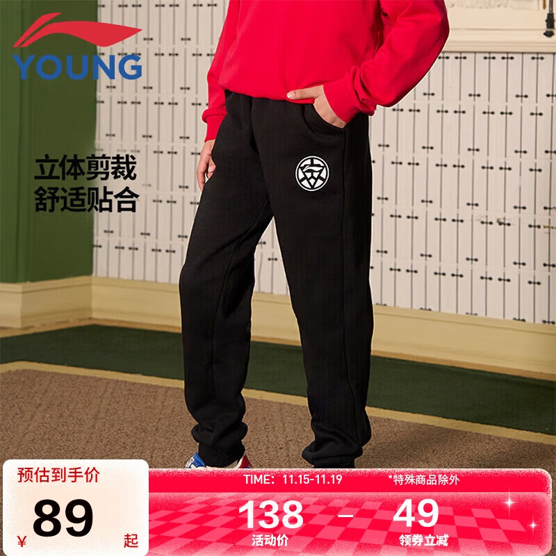 李宁童装儿童运动裤子男小大童经典加绒保暖束脚卫裤160YKLU321-1