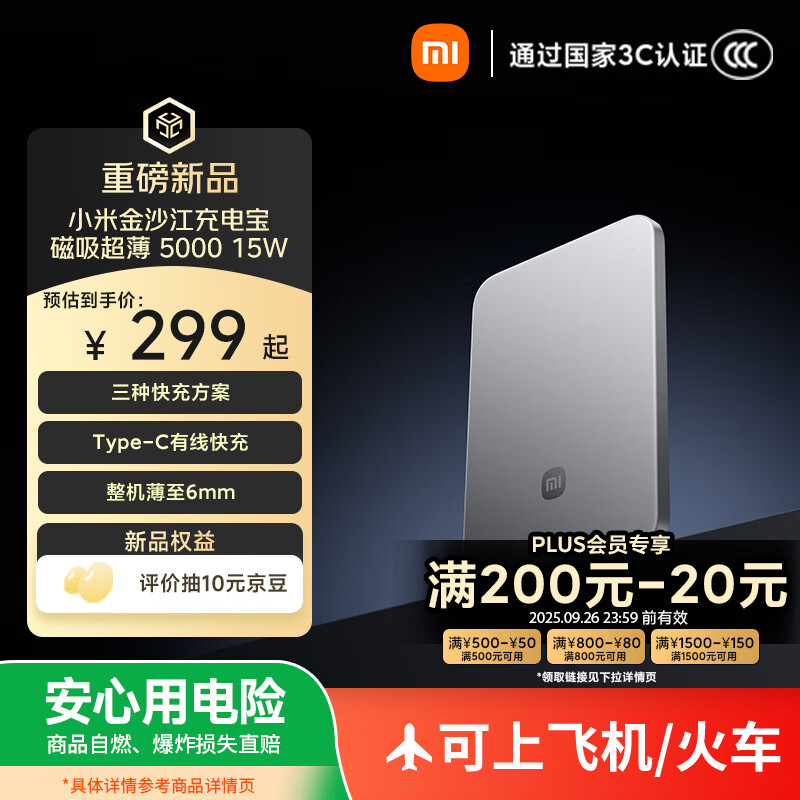 小米(MI)【3C认证】金沙江充电宝 磁吸超薄5000 15W发布会/小米手机17Pro/iPhone17 ProAir适用/有线22.5W