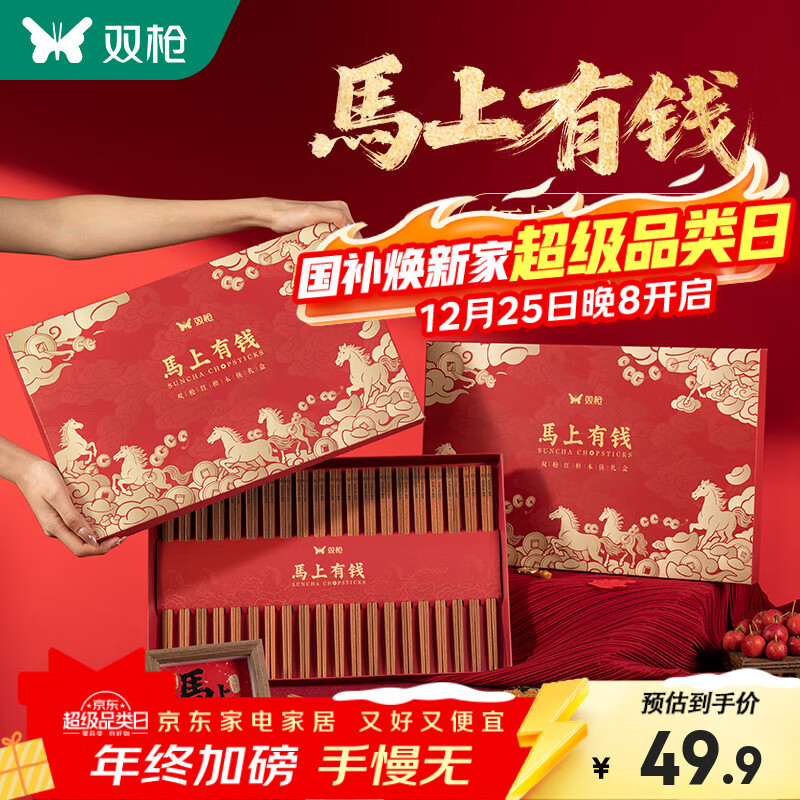 双枪马上有钱红檀木筷子家用礼盒装新年春节高档中式餐具礼品 【马上有钱】红檀木礼盒筷 20双