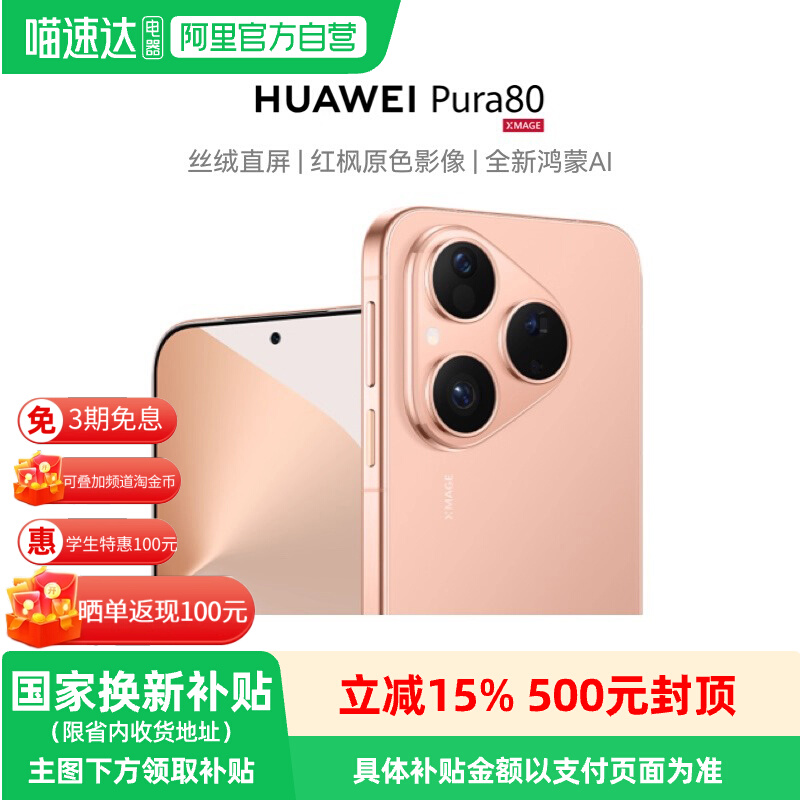 【晒单赠100元红包】华为 HUAWEI Pura 80 丝绒直屏 红枫原色影像 全新鸿蒙AI鸿蒙智能手机华为