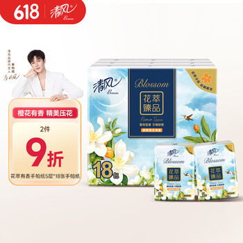 清风【李昀锐同款】有香印花5层5张*18包手帕纸 迷你便携 橙花香