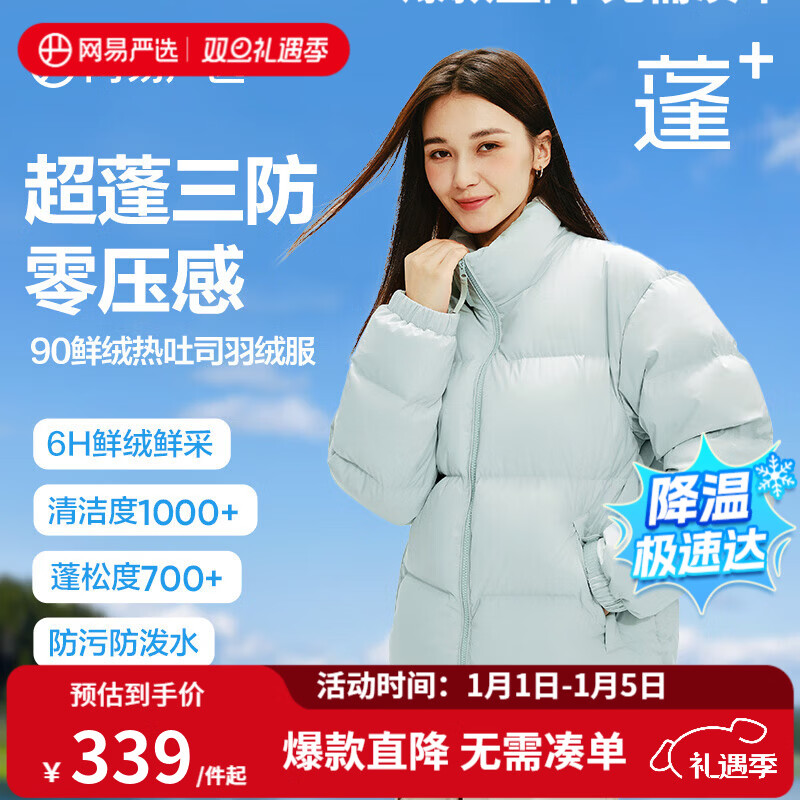 网易严选【断码清仓】热吐司pro三防超蓬零压加厚90白鸭绒鲜绒面包 水苏绿-立领纯色 S