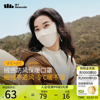 蕉下(beneunder)防晒防风口罩保暖秋冬面罩女绒感不闷聚热隔冷原露米WP33024