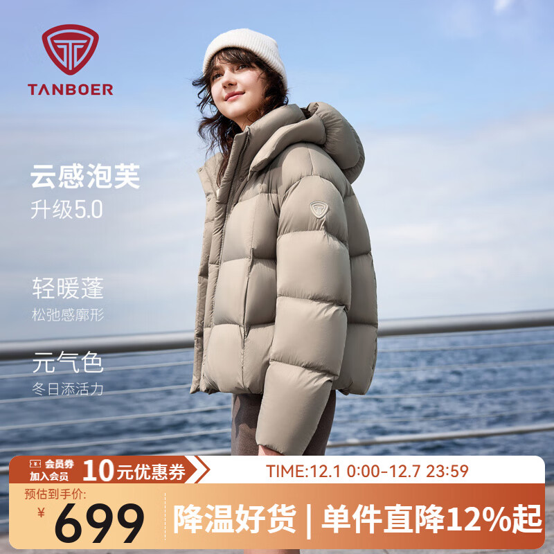 坦博尔(Tanboer)【明星同款】泡芙羽绒服短款女新款冬季热卖面包服保暖外套520D 抹茶摩卡 XS (155)