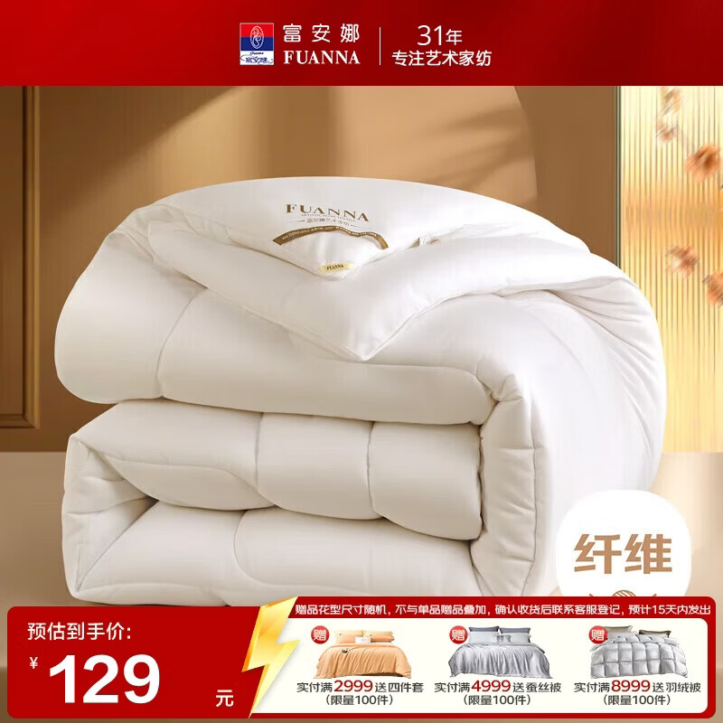 富安娜 舒暖 纤维被子冬季被芯 双人磨毛冬厚被 约7斤 230*229cm 白色