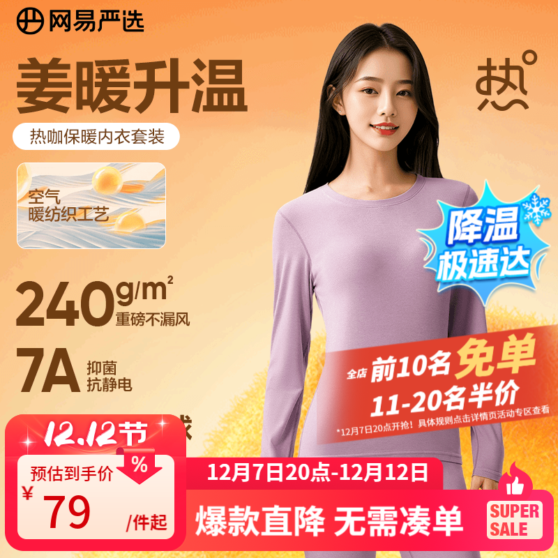 网易严选新品暖姜保暖内衣240g重磅7A抗菌柔软透气不闷汗秋衣秋裤 A款暖姜7A抑菌-芍药紫-女 M