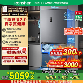 容声方糖515升主动净味双系统法式多门四开门超薄嵌入式电冰箱制冰一级能效灰色冰箱 国家补贴20% BCD-515P60FZMAD-KC51月岩灰