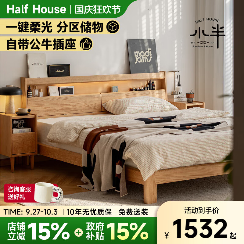 小半实木床全实木小户型原木风1.8m*2m主卧家用双人齐边床