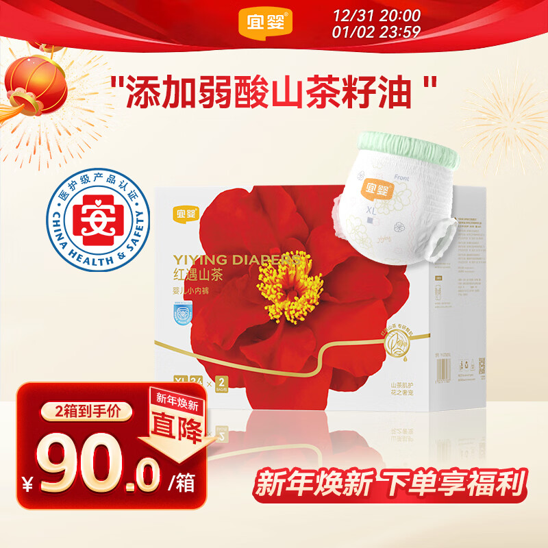 宜婴红花山茶裤 XL68片 弱酸拉拉裤 护臀尿不湿透气纸尿裤【整箱】