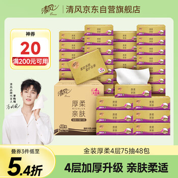清风(APP)【李昀锐同款】抽纸 原木金装4层75抽*48包S码 卫生纸巾抽 整箱
