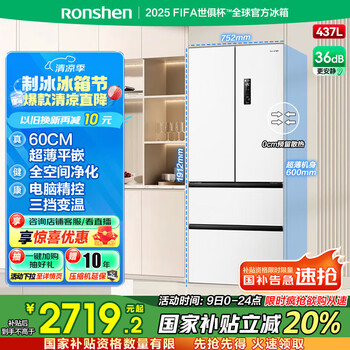 容声【国家补贴20%】437升法式多门四开门超薄嵌入式电冰箱家用一级能效风冷无霜节能BCD-437WD3MPQ白