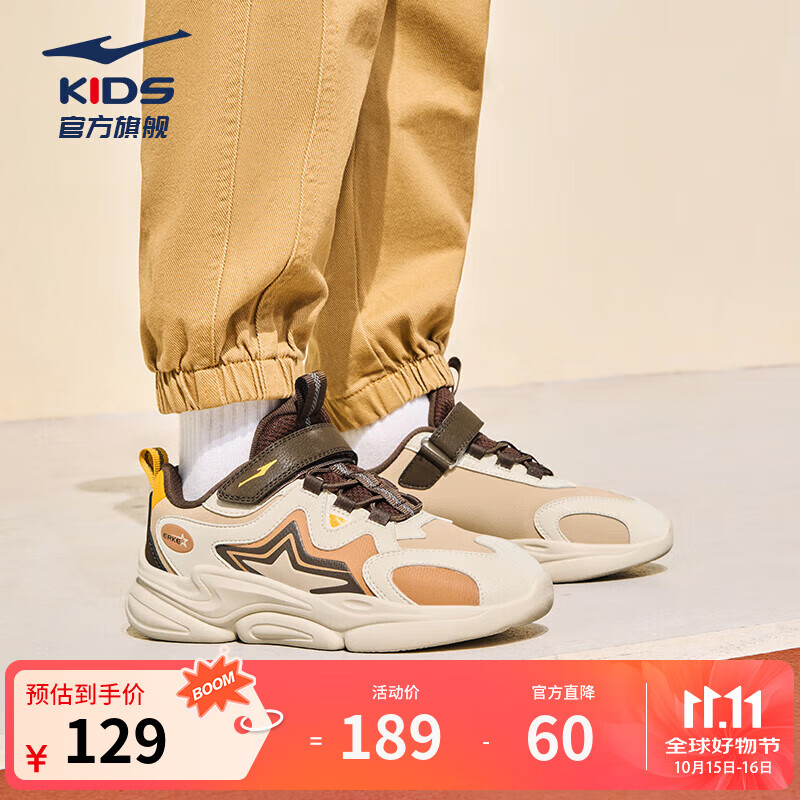 鸿星尔克女童运动鞋冬季新款休闲革面跑鞋儿童运动鞋丨星耀 深檀色/暖亚麻 -偏小1码 36