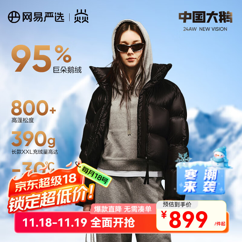 百亿补贴网易严选中国大鹅x燕云联名款焱2.0升级95白鹅绒羽绒服高蓬五防-30℃抗寒 24年基础款-短款-朱墨 L (175/96A)