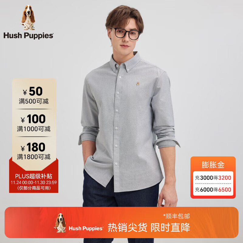 旗舰店暇步士(Hush Puppies)【王天辰明星同款】男装2025春秋新款柔软舒适长袖衬衫 月光灰 XL