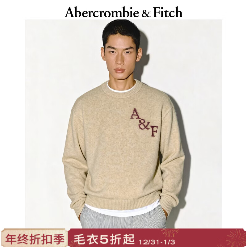 旗舰店Abercrombie & Fitch【经典LOGO】美式绒感保暖套头毛衣针织衫25秋冬男装120-5181 卡其色 S (175/92A)