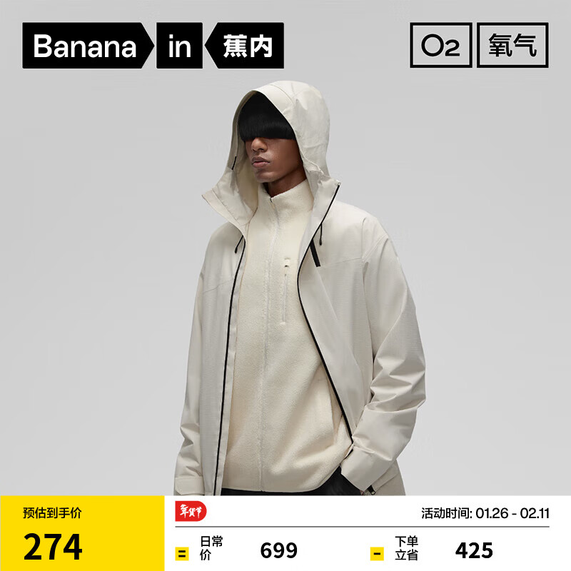 旗舰店蕉内(Bananain)【雷总同款】302Proof Pro男士三合一冲锋衣防风运动户外保暖外套 抓绒+302PP外壳丨黑色 S