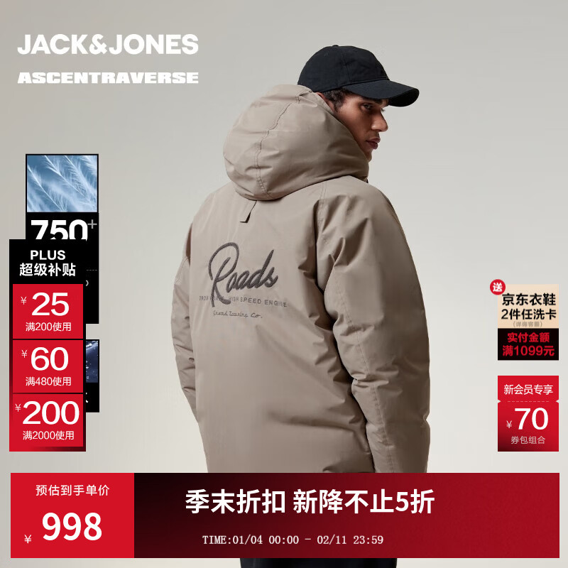 旗舰店杰克·琼斯(JACK&JONES)【AT系列】冬季款男装羽绒服百搭宽松连帽日常休闲上衣225412048 E13蘑菇棕色 L (180)