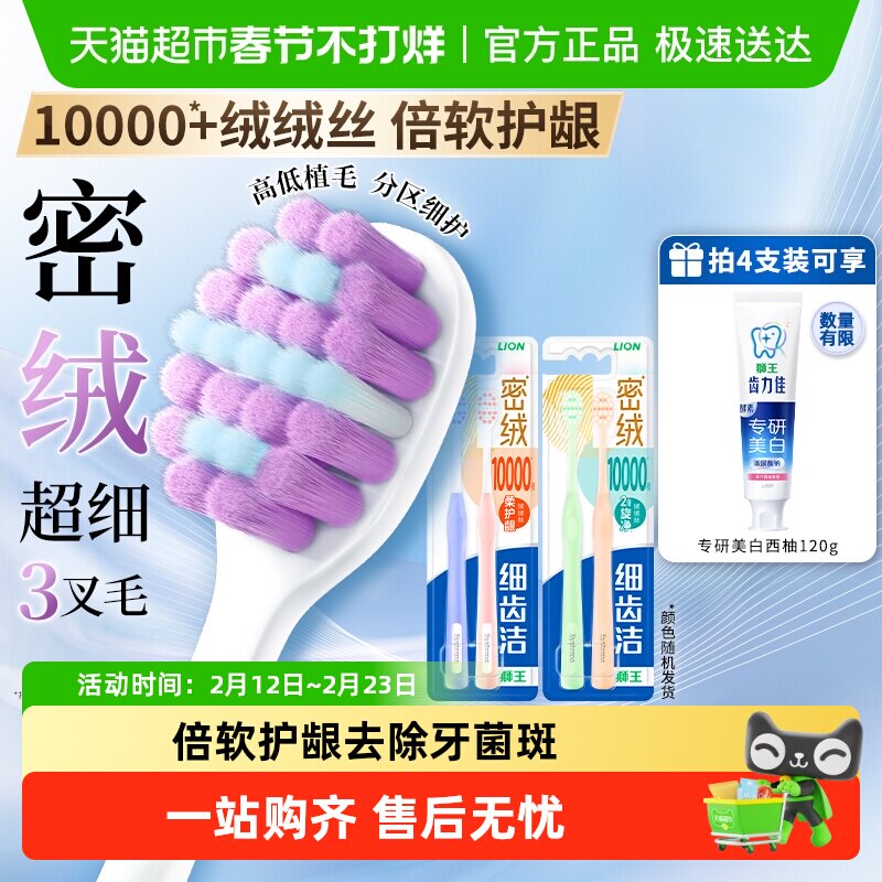 LION狮王细齿洁密绒旋风万毛牙刷成人软毛家庭装护龈口腔清洁