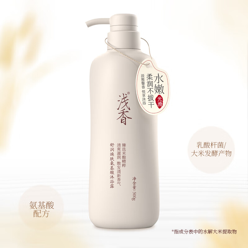 自营浅香(ASAKA)沐浴露氨基酸沐浴乳液香氛洗澡水锁水保湿持久留香米酿沐浴露500g