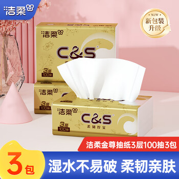 旗舰店洁柔抽纸纸巾金尊抽纸3层卫生纸餐巾纸擦手纸面巾纸车载纸品家用抽纸 3层 100抽*3包