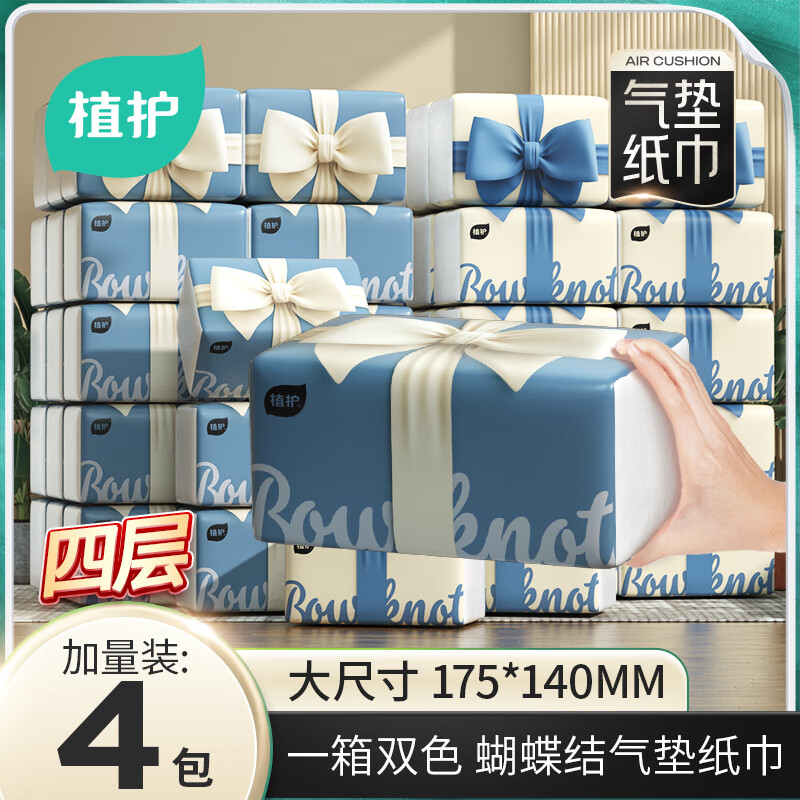 旗舰店植护气垫抽纸 大包纸巾家用纸抽 面巾纸 4层 296张*4包