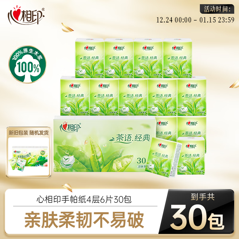 自营心相印手帕纸 茶语经典 4层180片淡茶香 纸巾 便携 湿水不易破