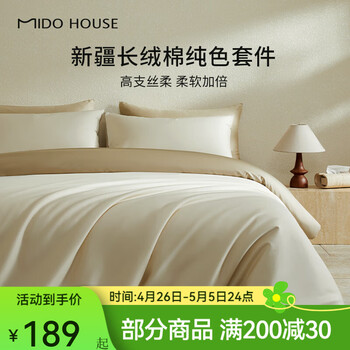旗舰店MIDO HOUSE【限购一件】铭都新疆长绒棉四件套纯棉床上四件套床单被套三件套 体验价-流光杏配奶杏棕【60支】 1.2/1.35m床单款三件套