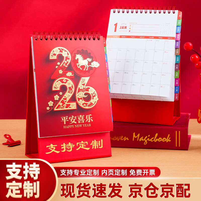 自营腾雄(TENGXIONG)台历2026年中国风简约红色喜庆日历月历记事本打卡计划本马年商务办公桌面创意摆件公司企业可定制