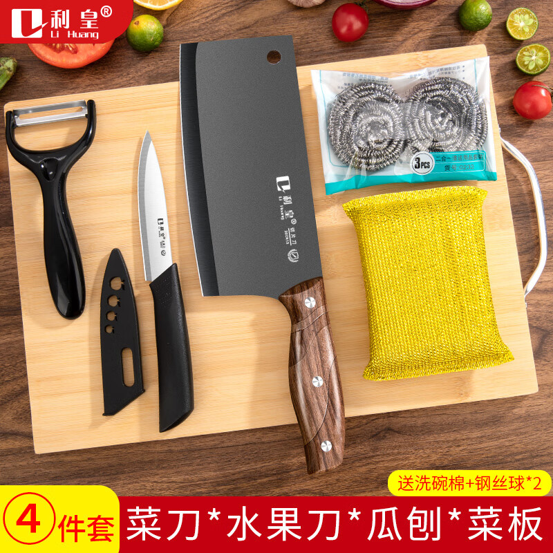旗舰店利皇菜刀菜板刀具套装砧板厨房厨具宿舍切菜刀锅铲组合全套家用 【送清洁套装】菜板菜刀4件套