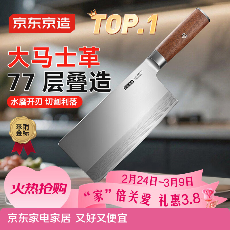 自营京东京造 77层大马士革钢菜刀 厨房家用切菜切肉切水果锋利刀具