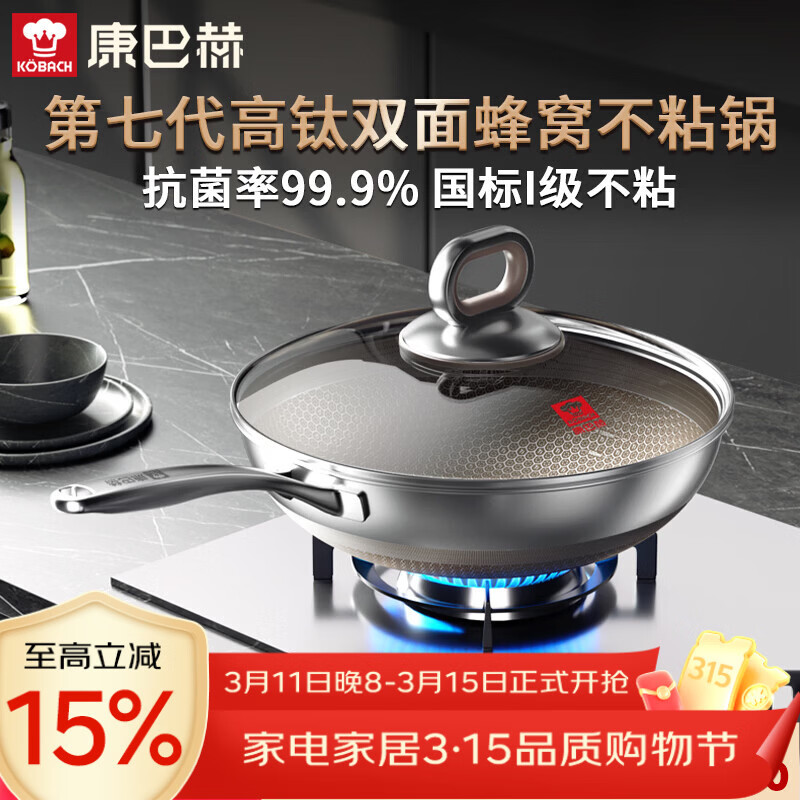 旗舰店炒锅新品第七代真钛蜂窝炒锅0氟涂层家用炒锅不锈钢不粘锅炒菜锅 【第7代真钛0氟】3-4人 32cm