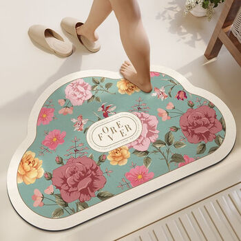 旗舰店KAYE浴室地垫软硅藻泥吸水速干垫子卫生间门口防滑垫厨房厕所卫浴脚垫 GZN-花韵-云朵异形 40x60 cm