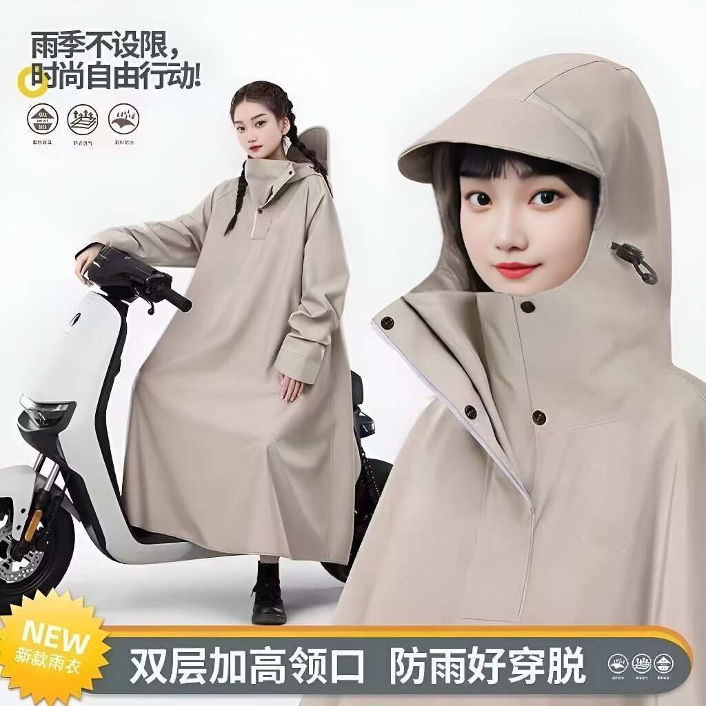 溥畔成人专用加厚防暴雨连帽雨衣儿童电动车雨披 升级按扣领口+双袖口+可调节魔术贴【卡其色)