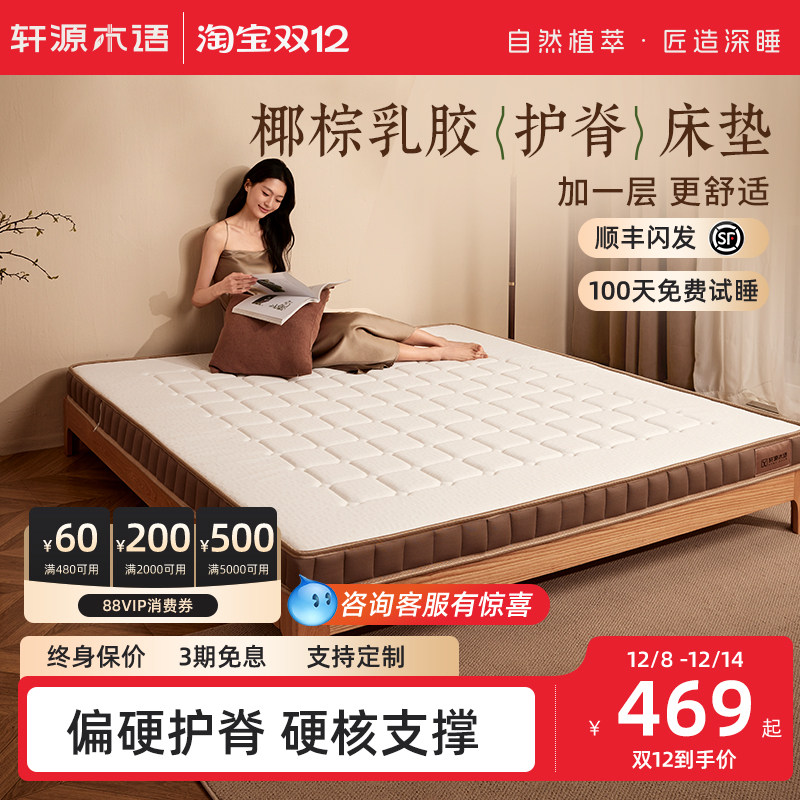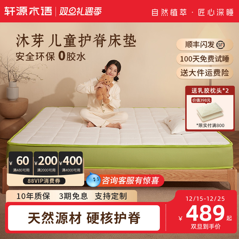 旗舰店轩源木语椰棕乳胶床垫儿童环保0胶水家用偏硬护脊榻榻米垫子定制