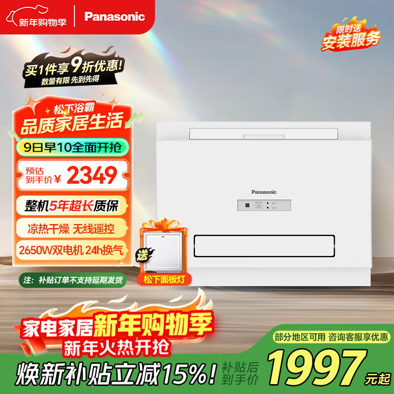 自营松下(Panasonic)浴霸暖风【国家补贴】排气一体 石膏板吊顶浴室暖风机 FV-RB26E1