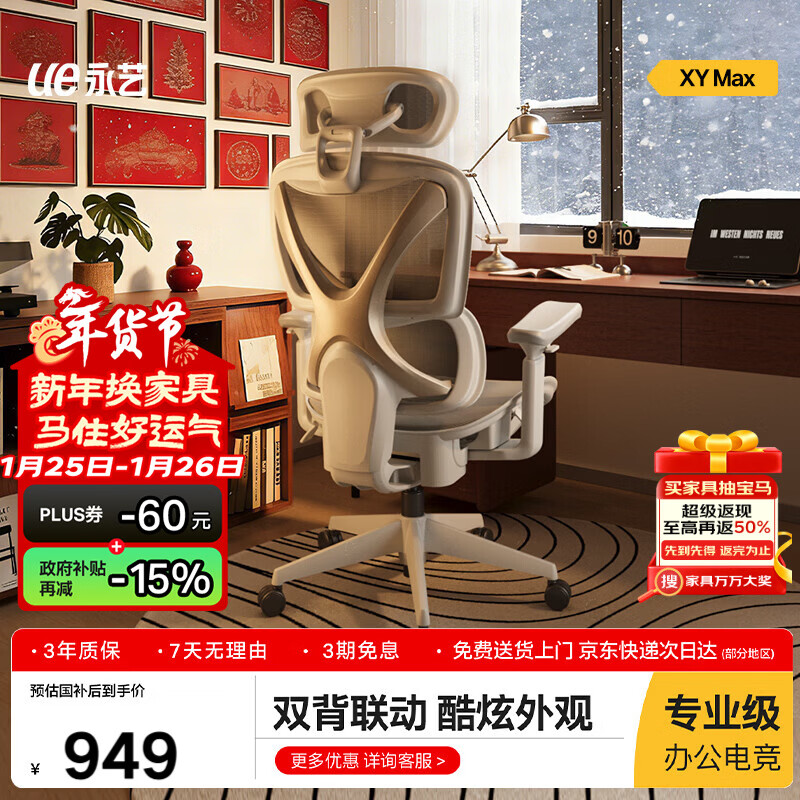 自营永艺XY MAX人体工学椅电脑椅办公椅电竞椅可躺人工力学座椅午休学习椅