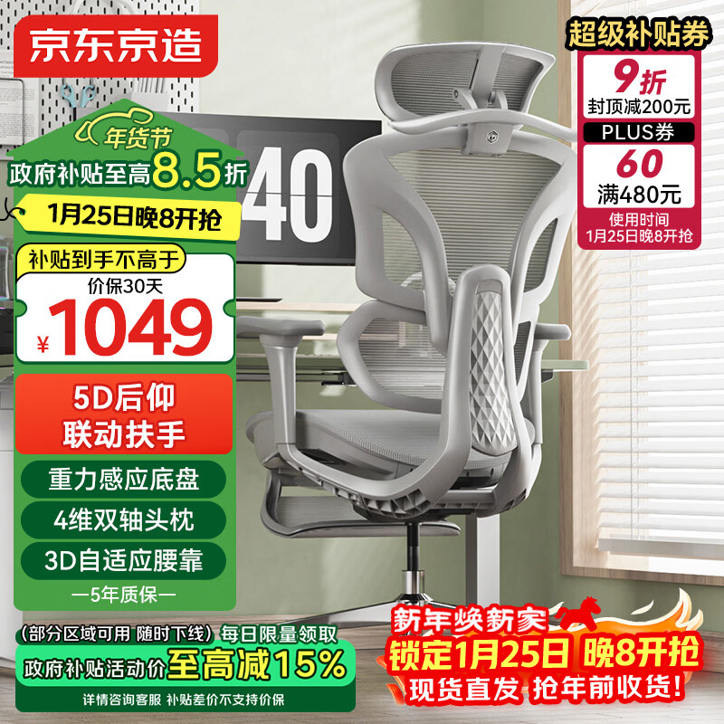自营京东京造Z9Ultra+人体工学椅电竞椅办公椅子电脑椅人工力学座椅联动扶手灰
