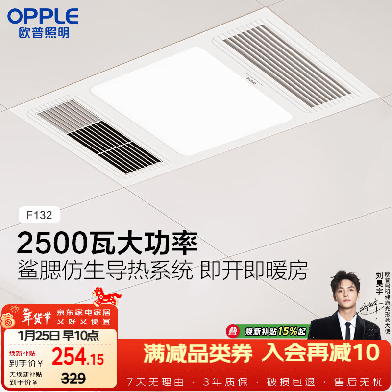自营欧普照明(OPPLE)风暖浴霸基础暖系列即开即暖浴霸超薄多合一 F132-A