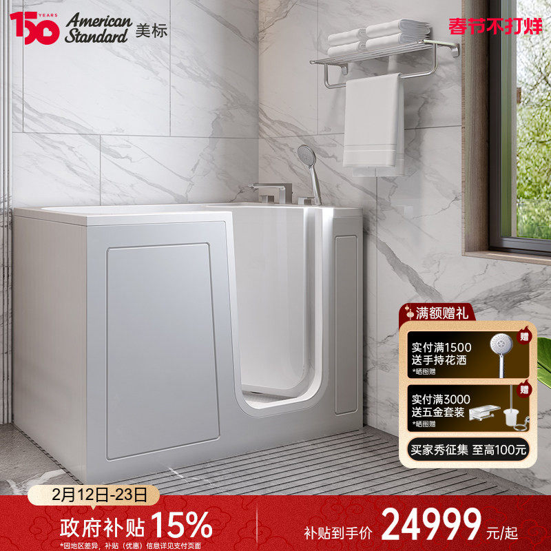 旗舰店美标适老浴缸步入式浴缸老人洗澡专用亚克力带门坐式深泡浴缸家用